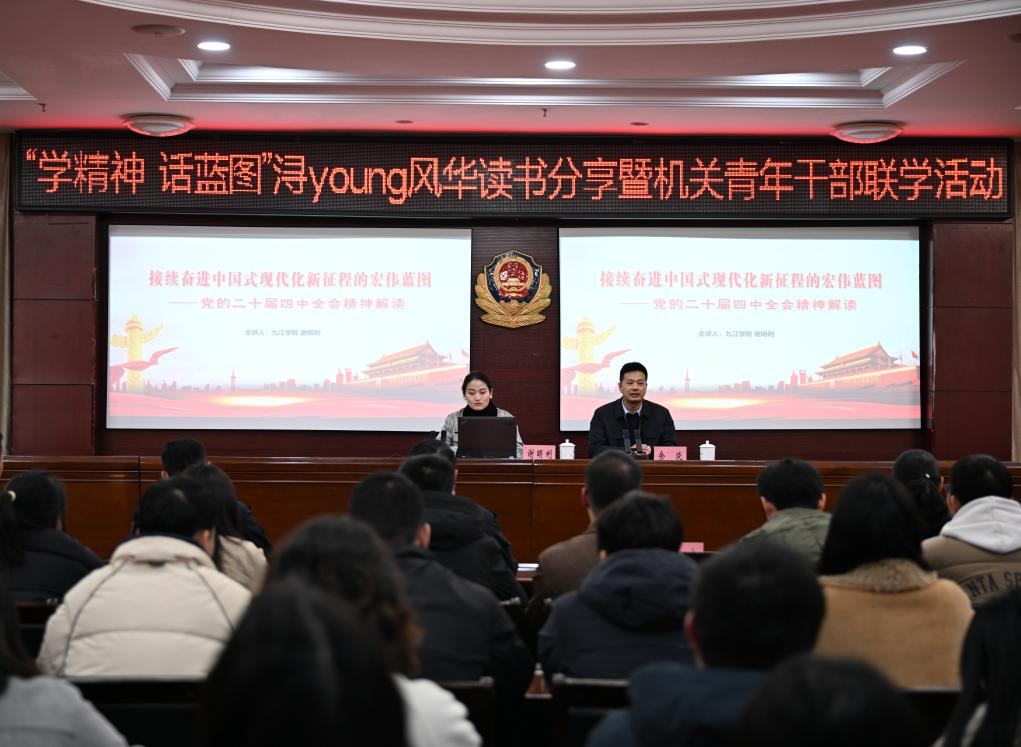 近日,市直机关团工委联合市公安局特巡警支队开展“浔young风华”读书分享暨机关青年干部联学活动,组织青年干部深入学习党的二十届四中全会精神,围绕“十五五”发展蓝图交流研讨,在思想碰撞中凝聚青春共识。市委办公室、市政府办公室、市公安局、市卫健委、市烟草专卖局、九江学院及市直机关工委60余名青年干部代表参加活动。会上,青年干部集中学习了党的二十届四中全会公报,认真领会全会精神核心要义。活动中,青年干部一起走进特巡警支队党建文化室、“智猎”工作室,观摩警务演练、特种装备,邀请“全国公安机关五四成绩突出个人”阳小胜,现场讲述在重大安保任务、应急处突现场中的亲身经历、惊险瞬间,引发青年干部热烈讨论。下一步,市直机关团工委将继续深化“浔young风华”品牌建设,以“小而精”的系列活动为载体,引导机关青年干部强化理论学习、坚定理想信念、凝聚干事力量。